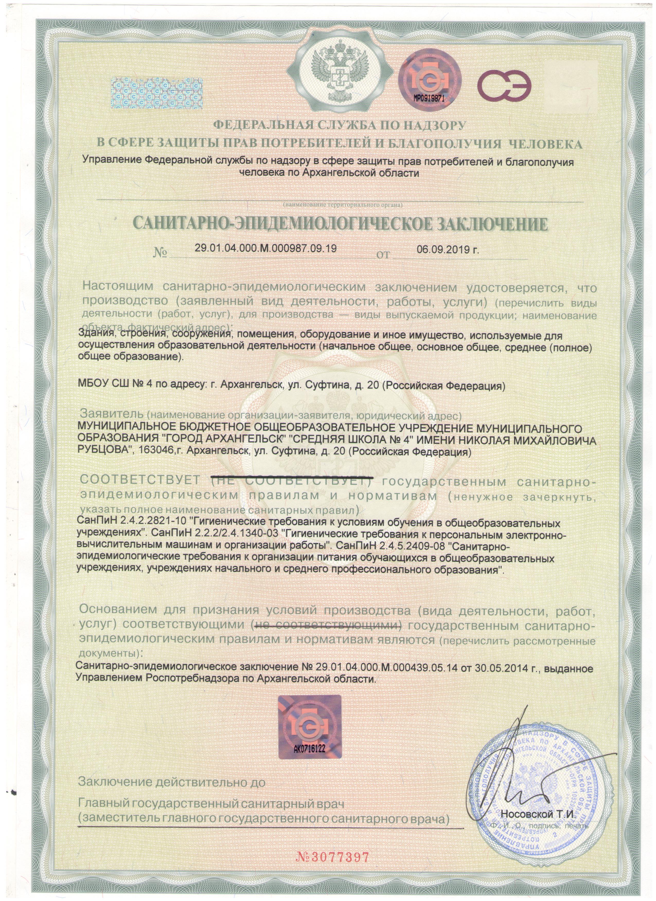 санитарно-эпидеомиологическое заключение 001